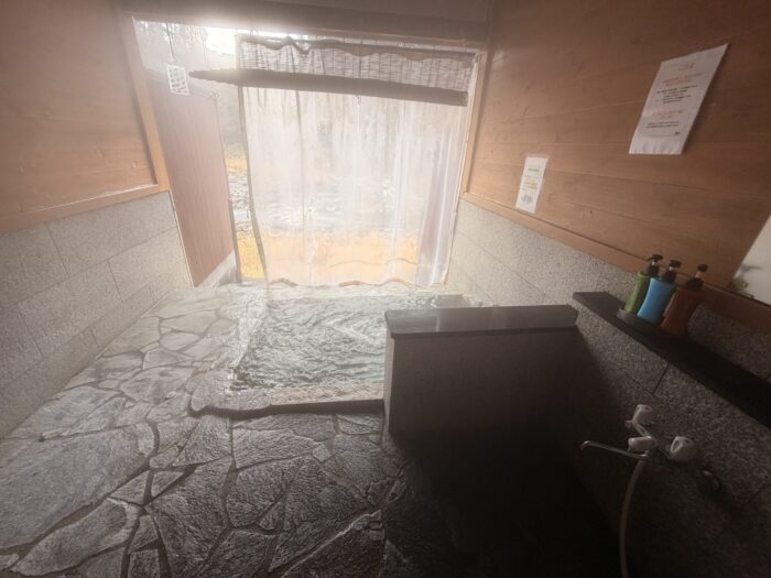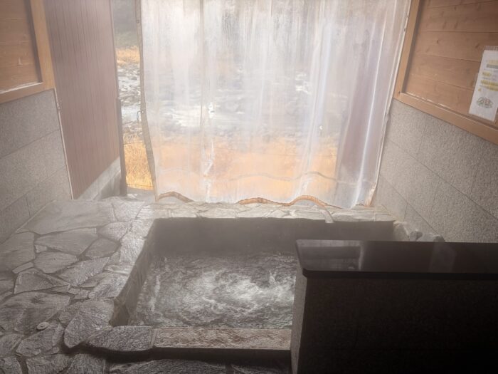 今回は透明ビニールシートを閉めたままでしたが、次回はカーテンを開けて、川の流れを眺めながら温泉に浸かってみたいと思います。