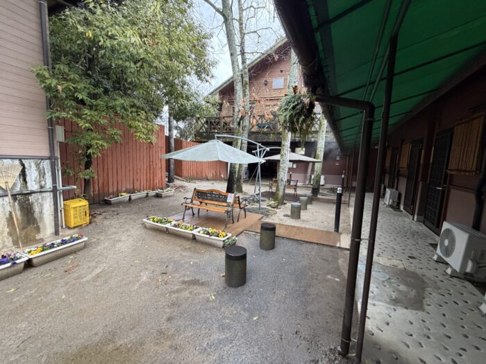 家族風呂を出た後、中庭のような空間にはベンチが設置されていて、湯上がりにゆっくりくつろげるようになっています。