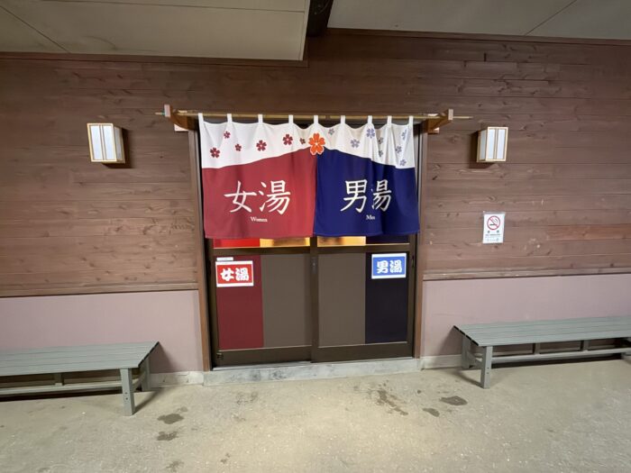 施設の一番奥には大浴場があり、男湯と女湯に分かれています。