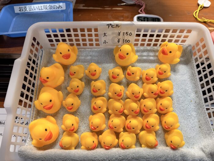 また、購入できるアヒルのおもちゃも大小2種類販売されていて、私は大きいサイズのアヒルを1羽、150円でお土産として連れて帰ることにしました。