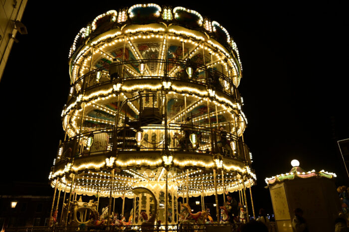 毎夜行われる点灯式では、アーティストの歌声に合わせて一斉に街が光に包まれる瞬間があり、そのドラマチックな光景にはあちこちから歓声が上がります。